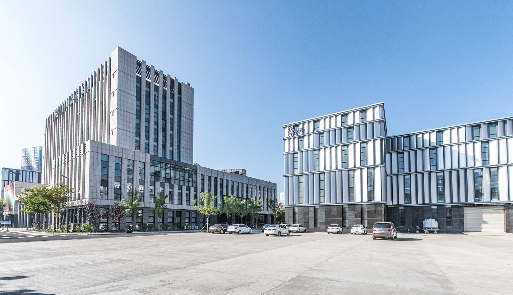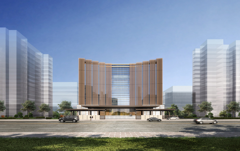 建筑主要采用白色基調(diào),以減輕日曬,部分裙房采用大理石面磚,以增加建筑的莊重性。