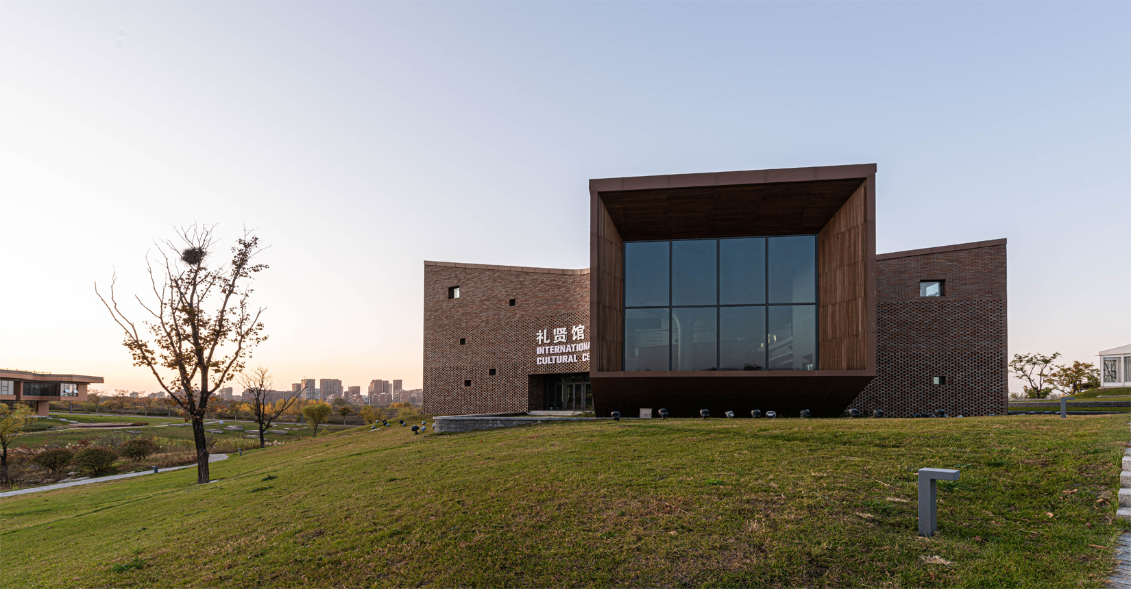建筑南側(cè)設置次要出入口,并與水流形成互動。建筑立面材質(zhì)采用精致的磚材拼面,屋頂采用微微揚起的處理手法;穩(wěn)重且不失變化。