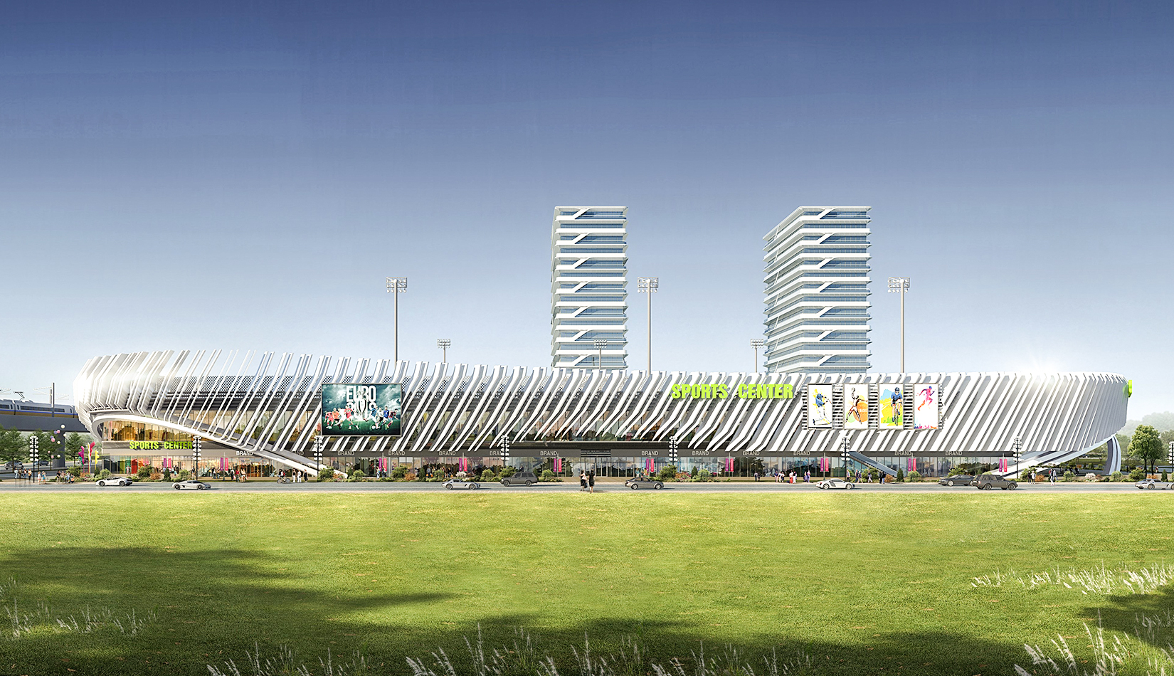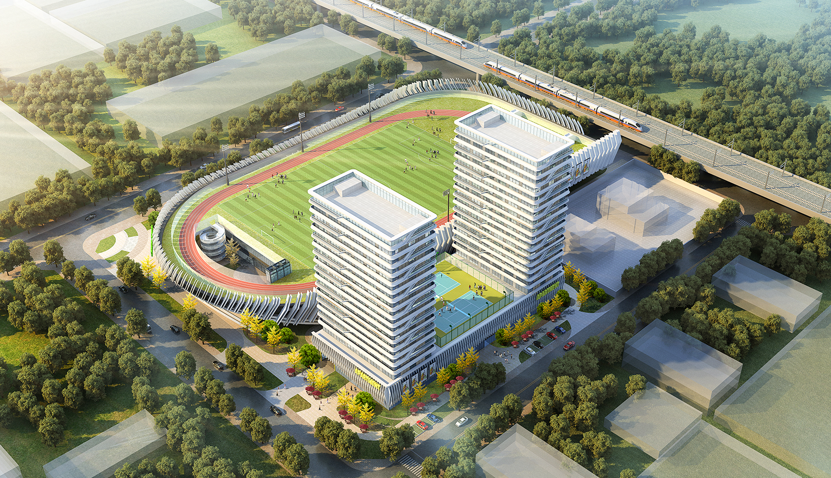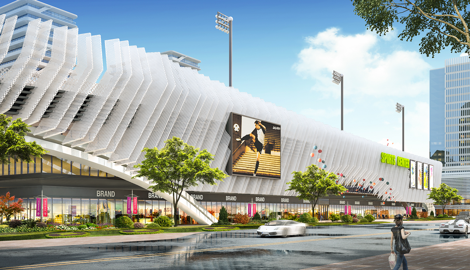 本項(xiàng)目提取高鐵動車和海浪浪花的概念,用白色鋁板陣列與變化塑造出體育綜合體泛著浪花的海洋波浪造型。同時利用動車動感流線的造型設(shè)計出公寓的整體方案。海浪與動車流線結(jié)合,不僅代表了青島的特色,更是詮釋了積極動感的體育精神。將景觀引入建筑,以景觀打造形象,形成未來綜合體發(fā)展模式。