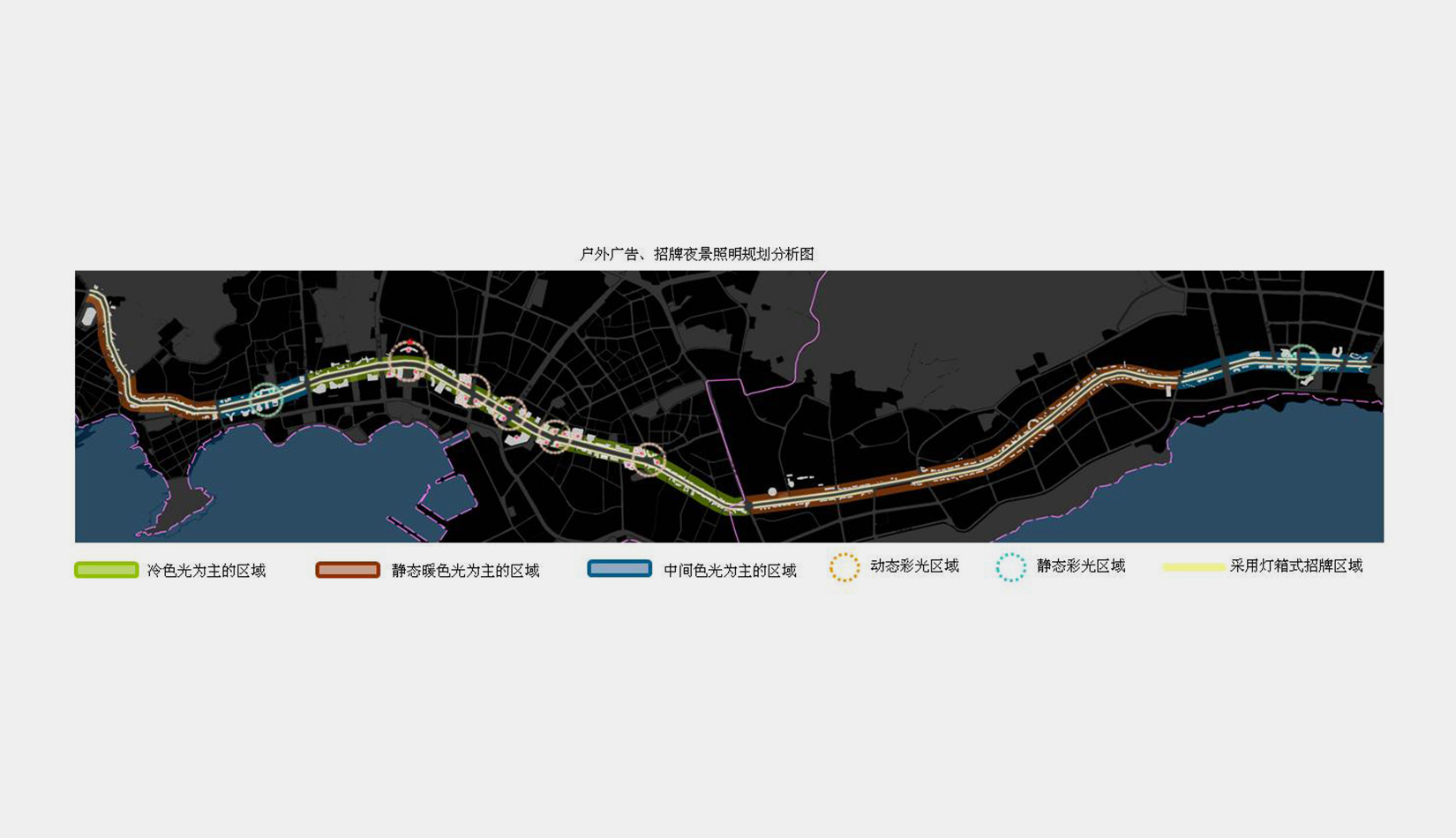 3、指導(dǎo)后續(xù)規(guī)劃實施。確定主干道分區(qū)分段的定位,制定戶外廣告設(shè)施控制細(xì)則,示范性提供重要節(jié)點詳細(xì)規(guī)劃設(shè)計,指導(dǎo)各行政區(qū)戶外廣告規(guī)劃、整治全面展開。