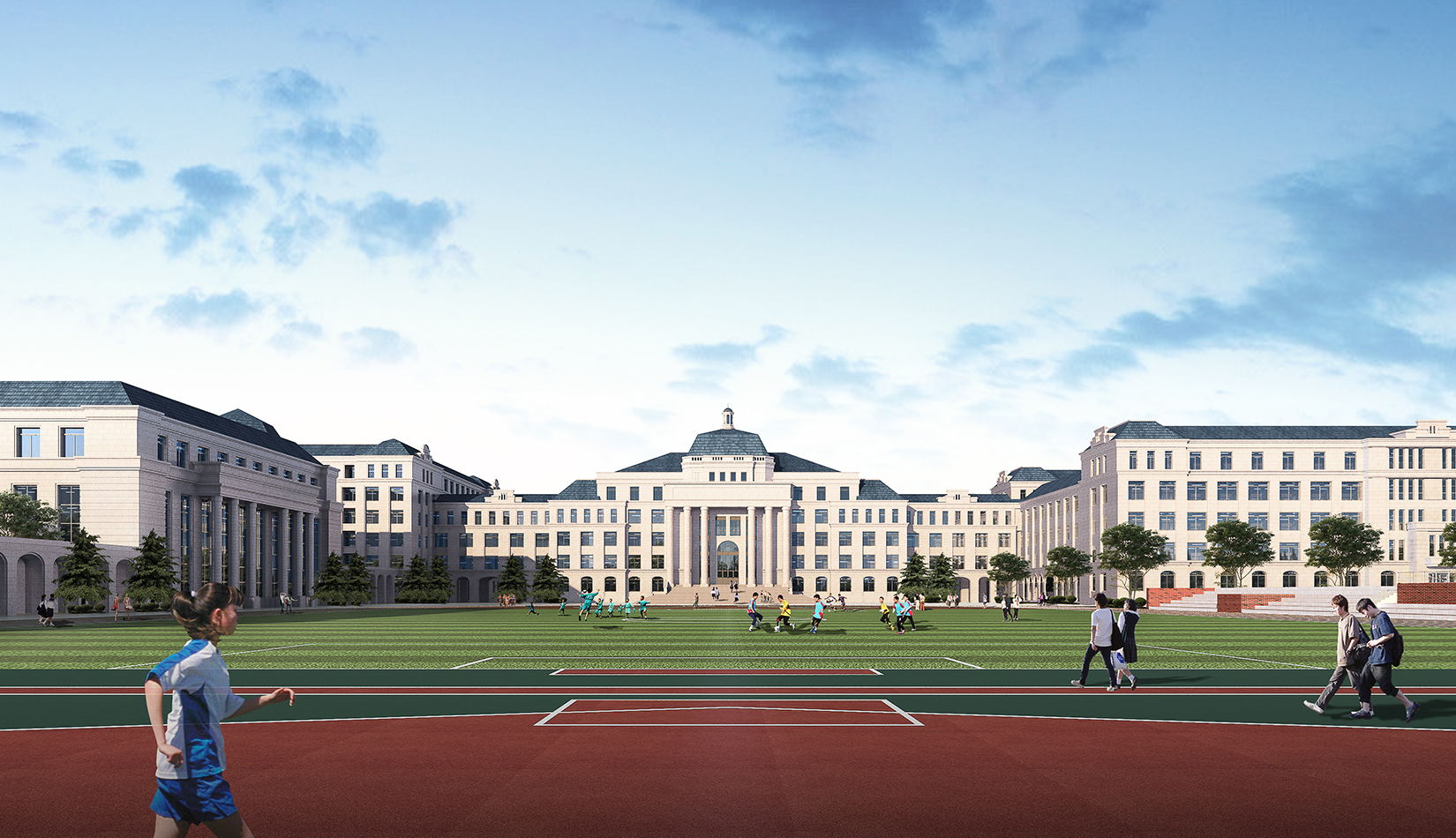 根據(jù)用地功能分區(qū),形成校區(qū)“軸線”關(guān)系,營造“書院”建筑圍合形態(tài)。方案設(shè)計(jì)主入口軸線院落組團(tuán)、教學(xué)區(qū)院落組團(tuán)、生活區(qū)院落組團(tuán)、次軸線院落組團(tuán),形成校園主出入口軸線關(guān)系,體育館對(duì)外次出入口軸線關(guān)系,以此傳承“國子監(jiān)”空間布局文化。