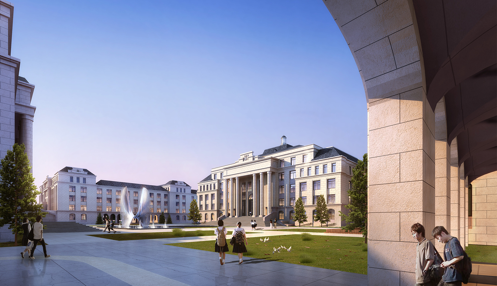 景觀設(shè)計(jì)引用了《禮記聘義》中對(duì)玉的六大特征:“禮”“知” “樂” “信”“義”“仁”作為景觀主題植入學(xué)校各個(gè)重要空間。