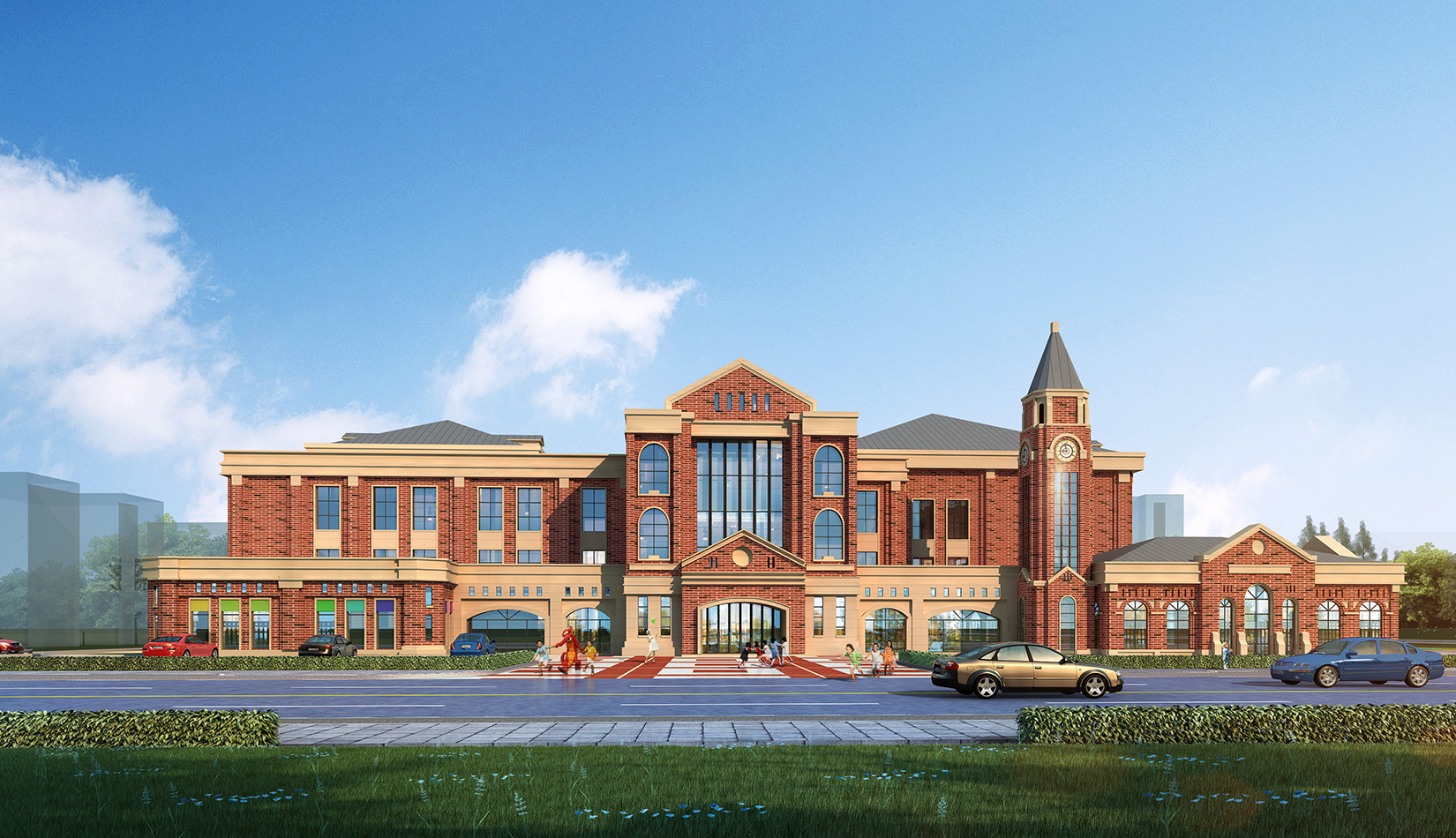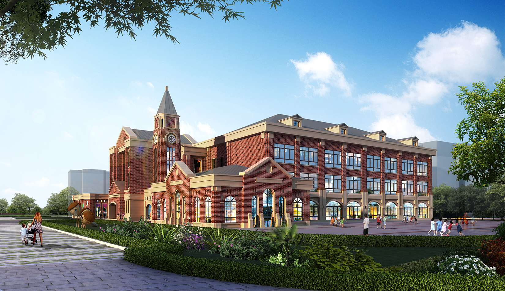 項目在設計中從幼兒特點考慮,通過活動空間、明快色彩以及建筑造型的展示,意在創(chuàng)造符合幼兒心理的童話世界。