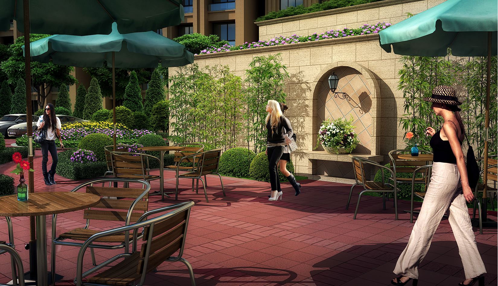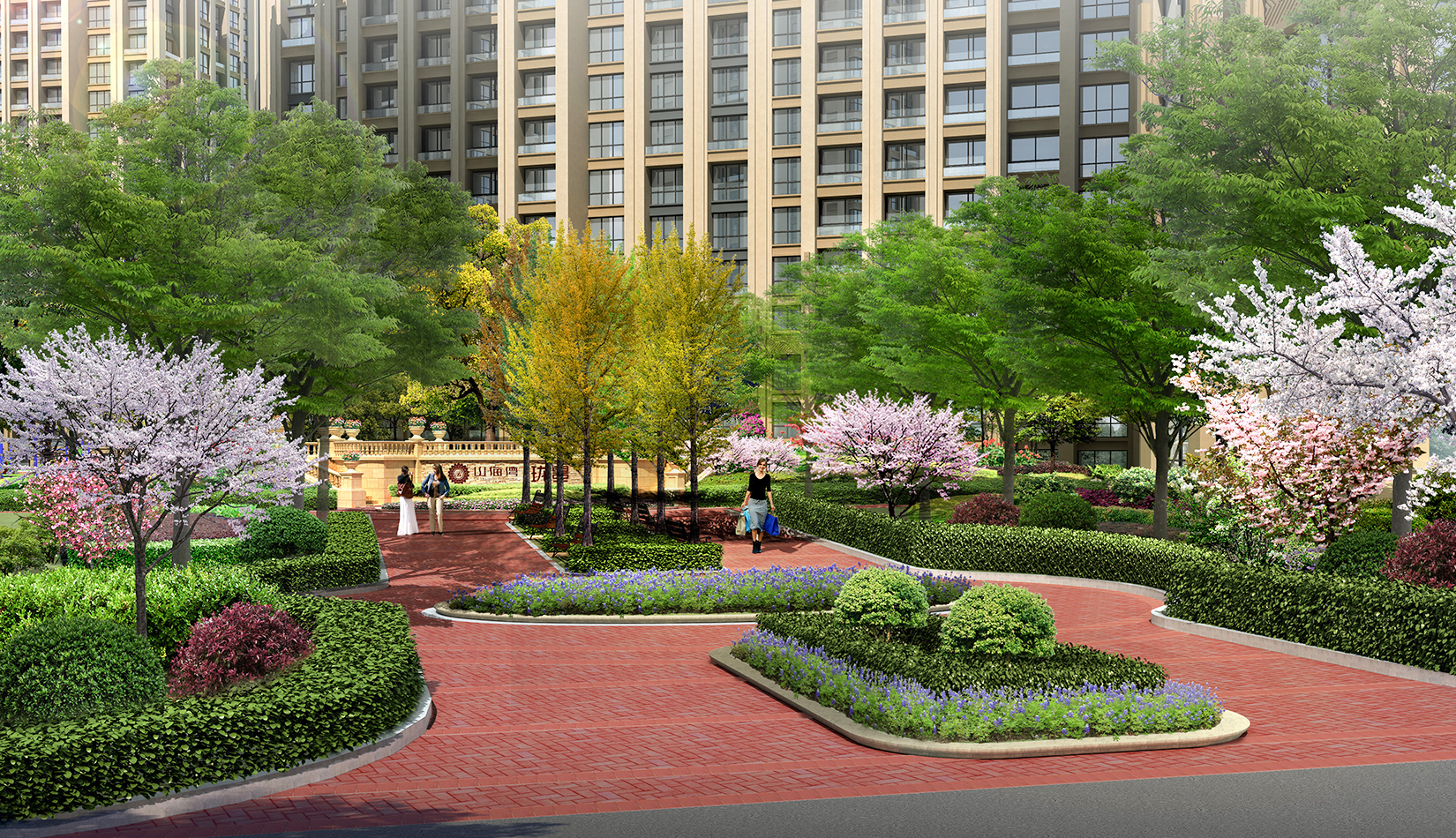 景觀風(fēng)格的設(shè)計選取與建筑風(fēng)格相統(tǒng)一的歐式景觀處理手法,營造自然、浪漫、典雅、宜人的景觀空間。