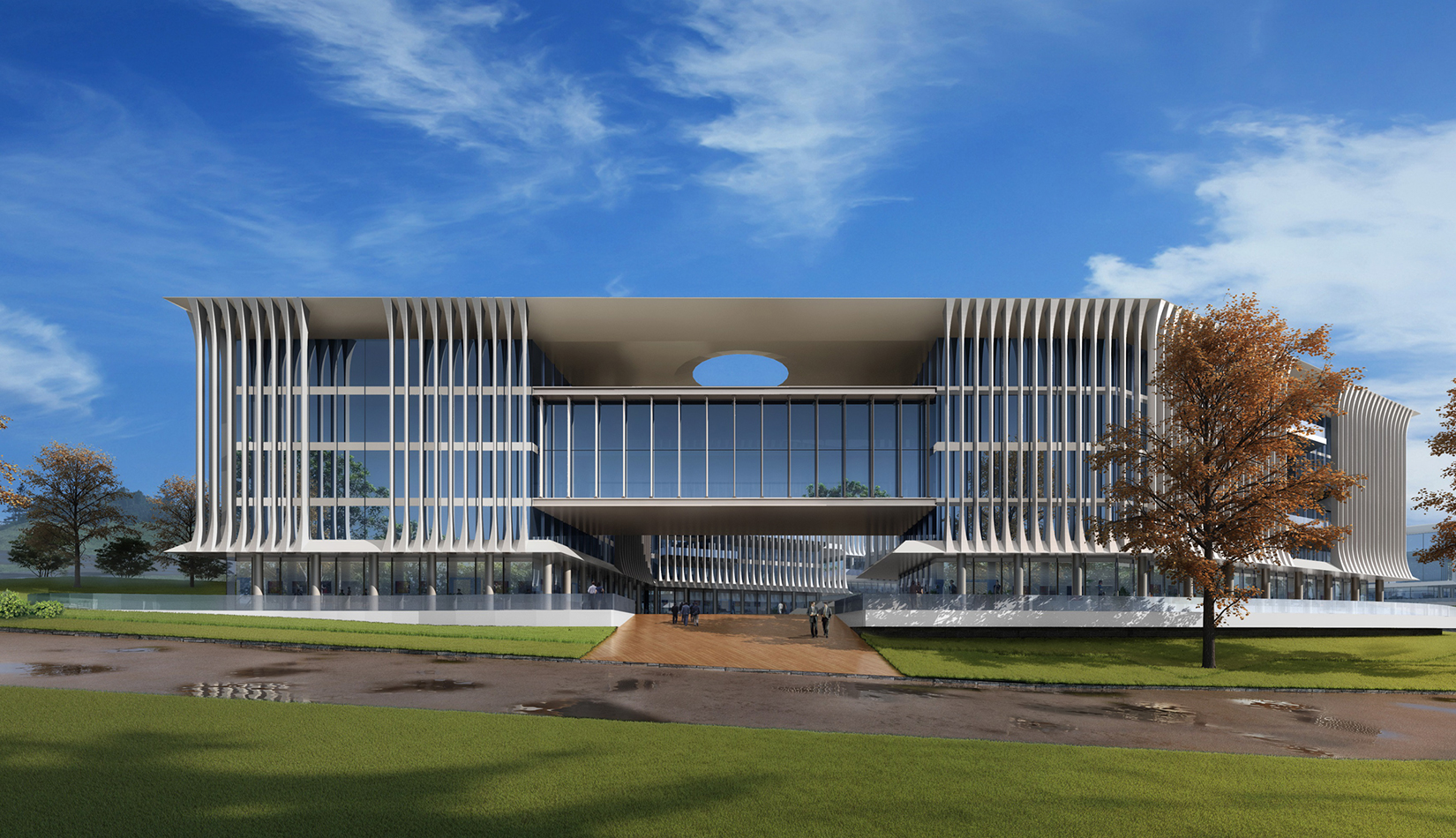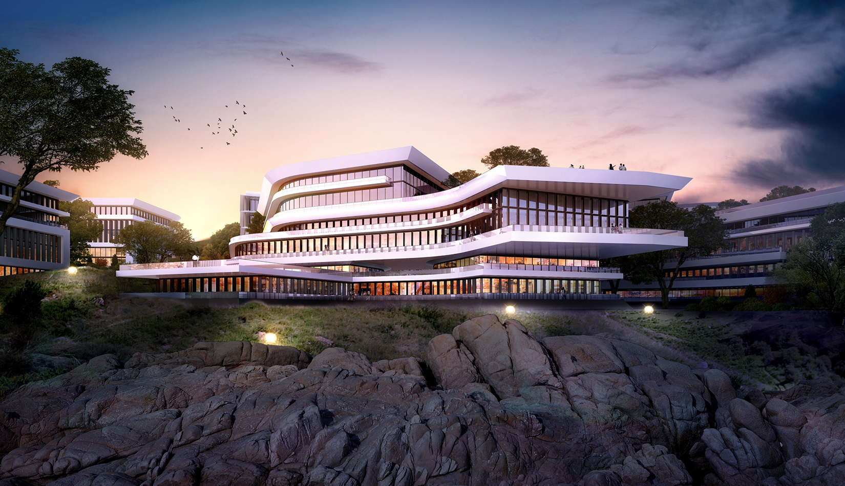 簡潔大氣的豎向橫向劃分,使MECS主樓充滿海洋氣息;白色流線型屋頂順應地勢,自由舒展。流線型的體塊靠近海岸線,表達科研人員的探索精神,并且與地勢相結合。