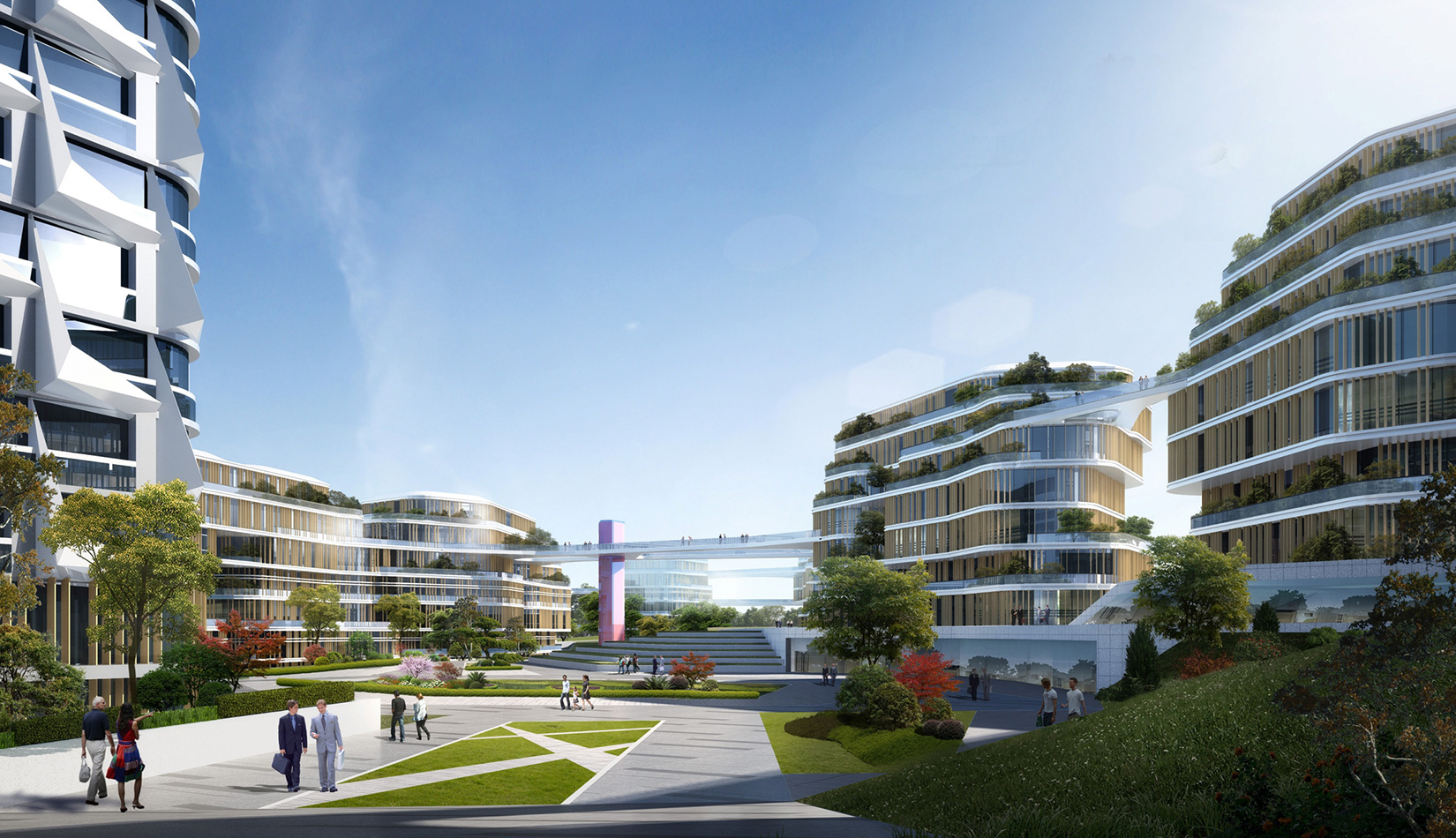 該項(xiàng)目以“流動(dòng)的星云”作為設(shè)計(jì)理念,順應(yīng)地形走向,溝通“山”“水”關(guān)系。